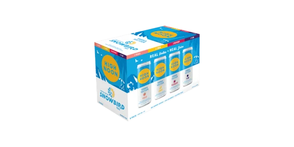 Made with real vodka & real juice, the High Noon Snowbird pack features 4 flavors, Peach, Lemon, Raspberry and Plum.